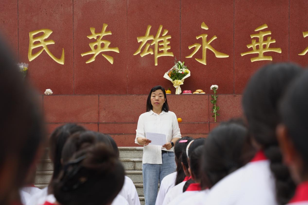 我校西藏部负责人曹慧发表讲话,为同学们讲解西藏百万农奴解放的历史,永远铭记广大农奴翻身得解放、成为自己命运主人的日子。同时介绍英雄山部分革命先烈彭业权、谭枝、胡华、戴怀珍等的光辉事迹,怀着无比崇敬的心情,深切缅怀革命先烈们的丰功伟绩。